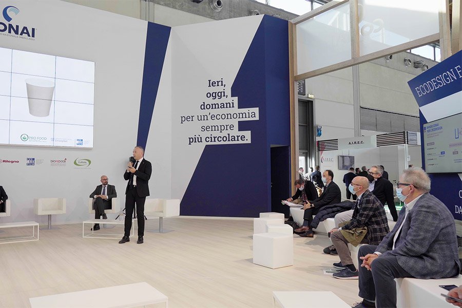 Così inizia l’introduzione di Fabrizio Bernini, che ha presentato la filiera sperimentale del riciclo del polistirolo espanso e del PET che hanno permesso la produzione delle nostre vaschette in r-XPS e r-PET.